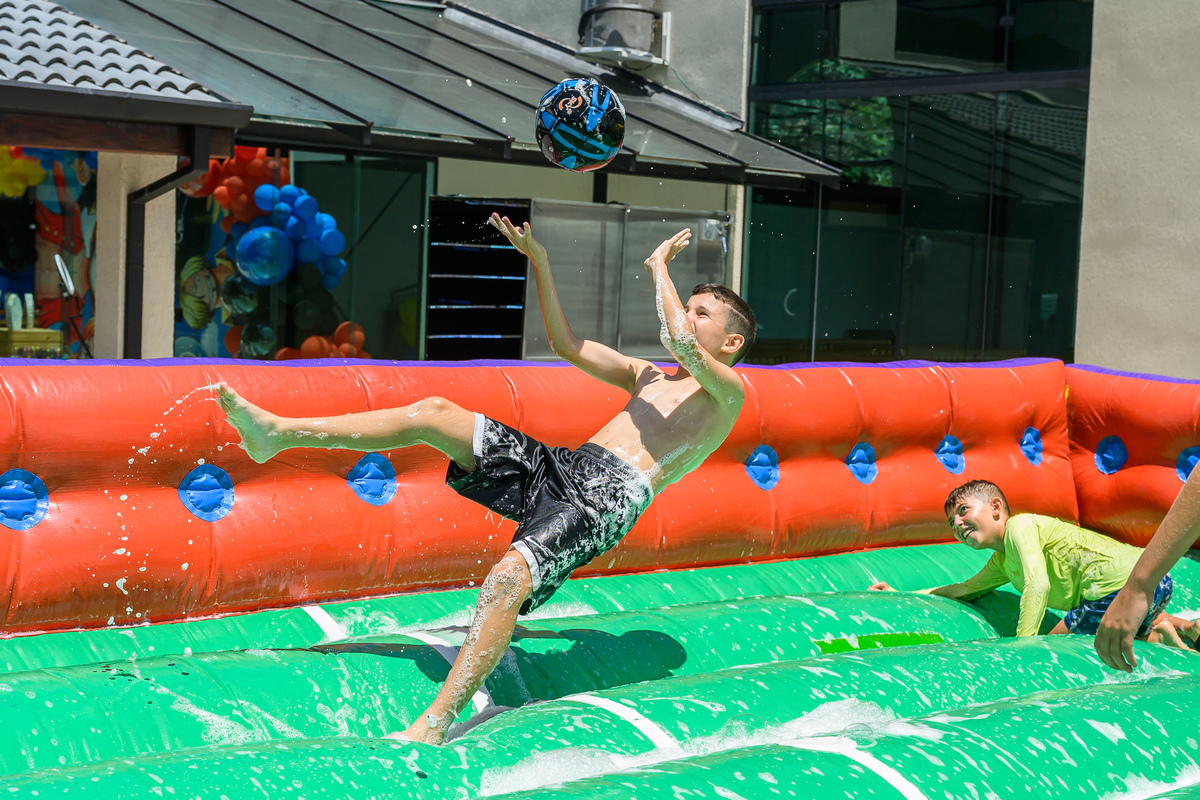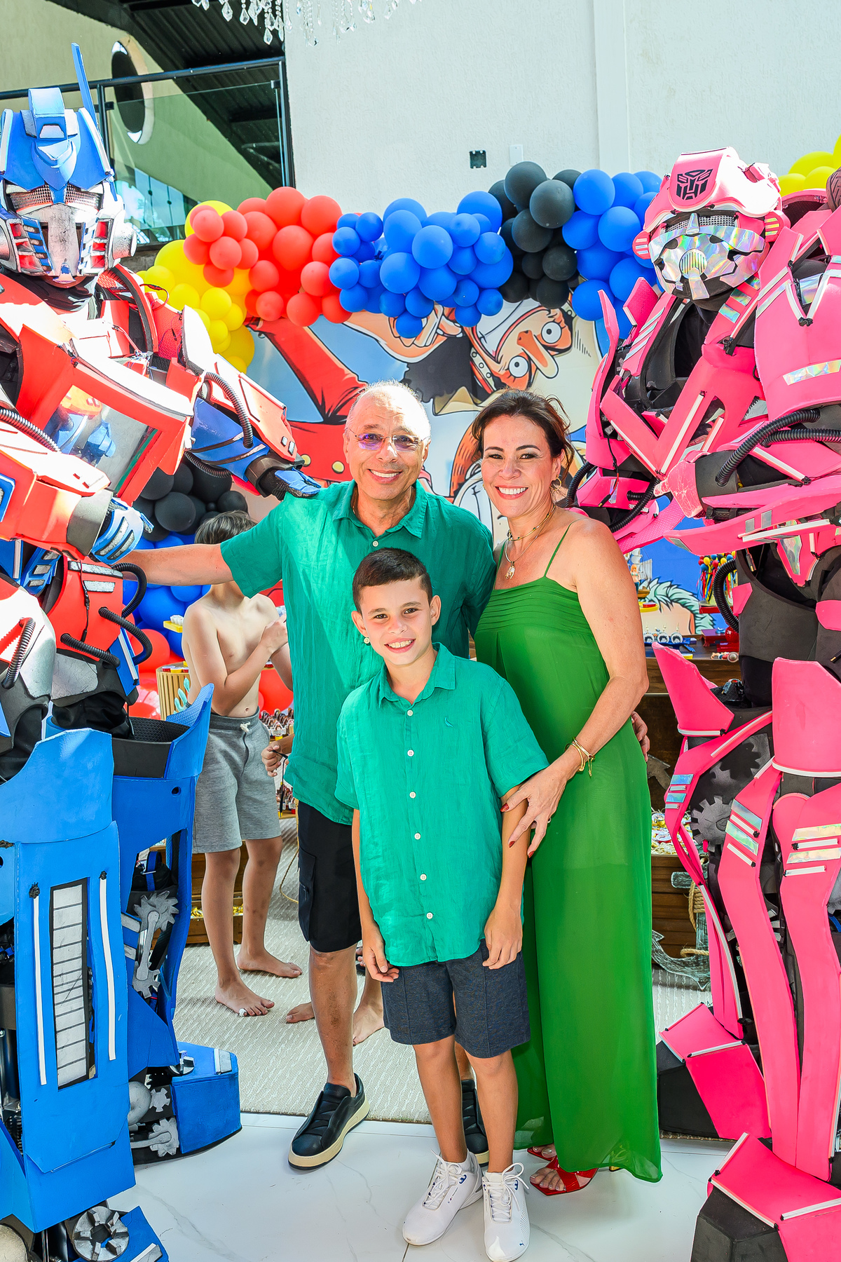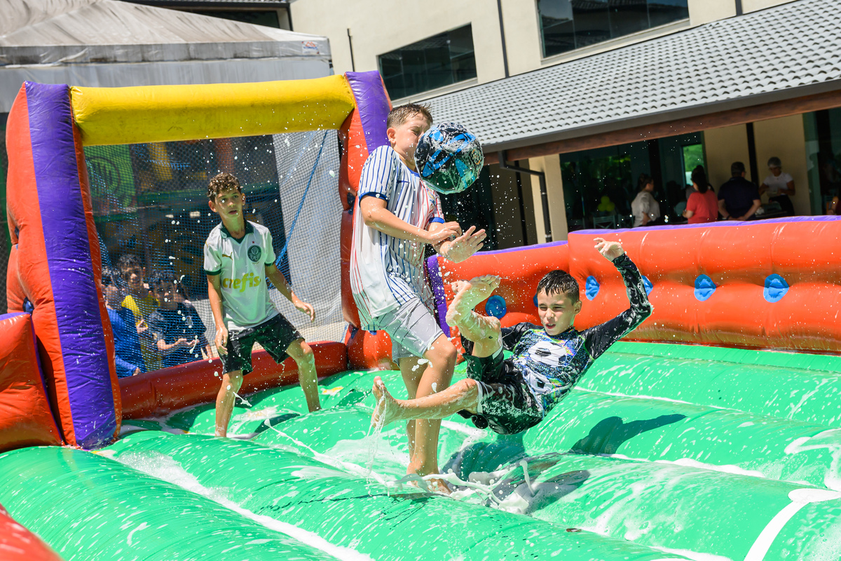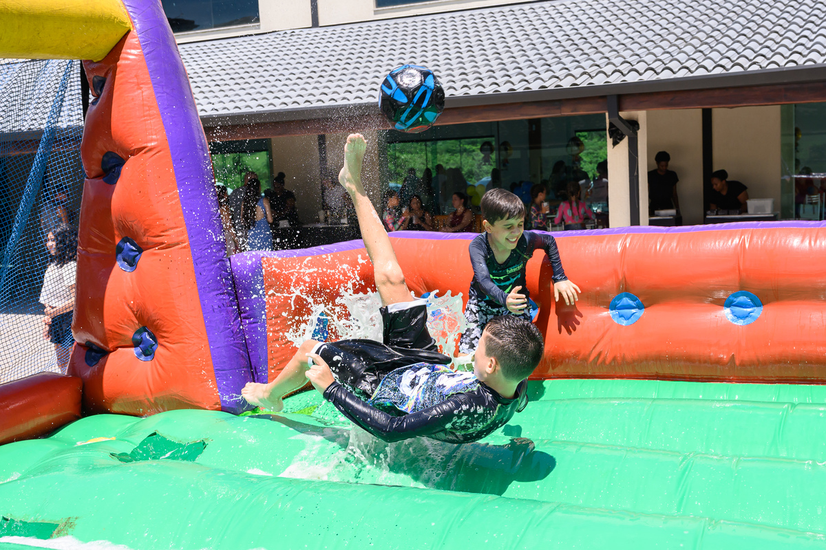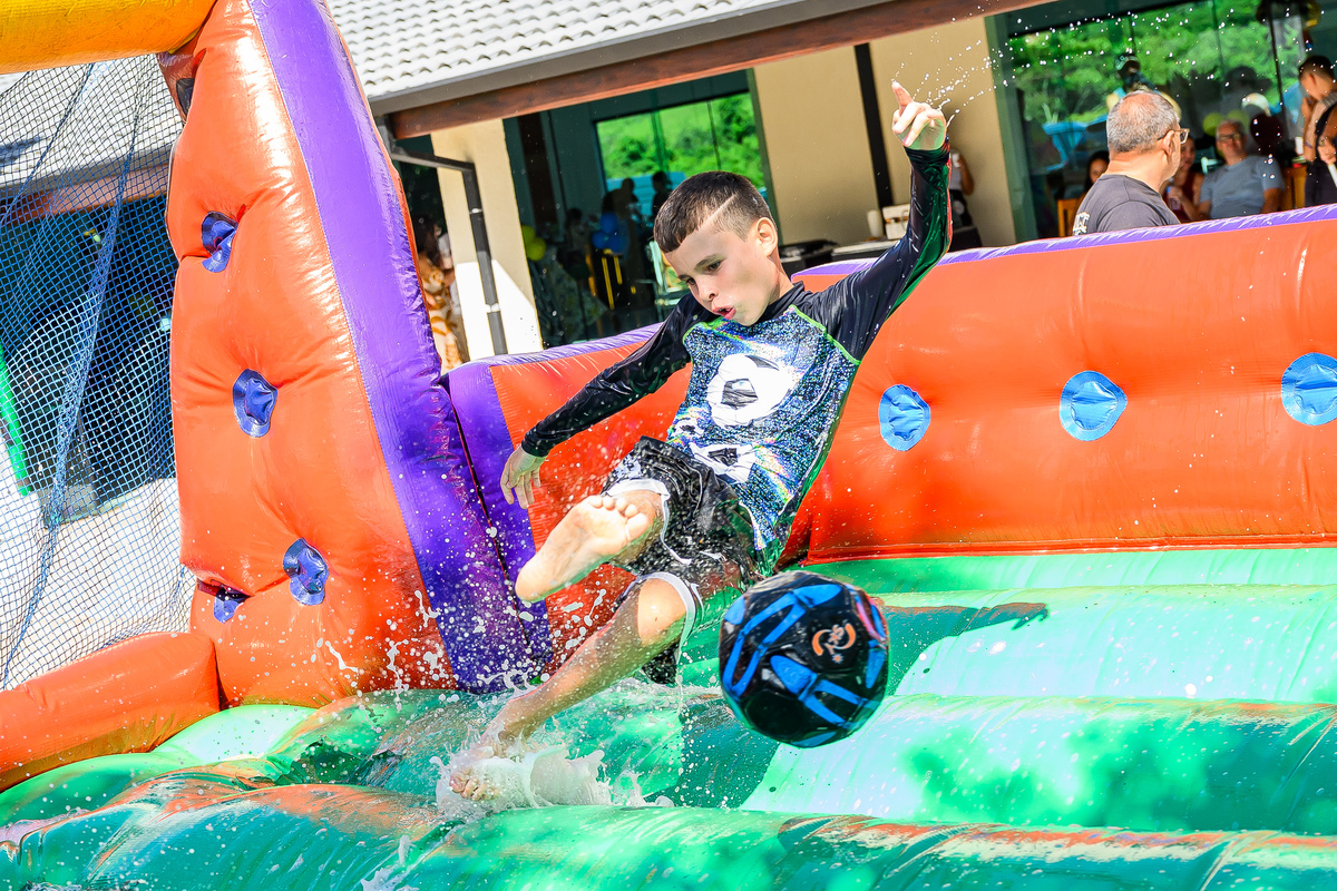 Lembrei muito dos meus tempos de Jornal Folha de São Paulo no aniversário de 10 anos do Gustavo. Afinal, fazia muito tempo que eu não passava tantas horas fotografando futebol. O Gustavo é um fanático pelo jogo, e desde a hora que cheguei, fotografei o Gustavo jogando futebol de sabão, futebol na quadra, futebol na grama, batendo bola com os amigos....ele não cansava. Os únicos momentos de folga para a bola aconteceram quando algum dos amigos dele o convenciam a ir no escorregador gigante feito ao lado do campo, que chegava em um laguinho lamacento. Rendeu boas fotos. E sem contar a hora do parabéns, na companhia de dois robôs gigantes . Todo mundo quis depois tirar fotos com eles. Por fim, foi muito legal relembrar do Gustavo e dessa familia sensacional, que eu já não fotografava a um tempinho. Que venham mais aniversários divertidíssimos do Gustavo!!