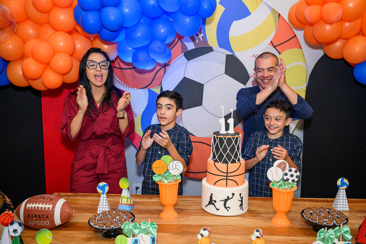Agora, mais uma vez, a vida me deu a oportunidade de estar presente em um momento especial dessa família: o aniversário de 11 anos dos gêmeos Murilo e Rafael. E olha… energia foi o que não faltou! Os meninos, como era de se esperar nessa idade, estavam a mil, mas confesso que nem eles conseguiram superar a animação da mãe, a Renata, que não parou um segundo sequer durante toda a festa.