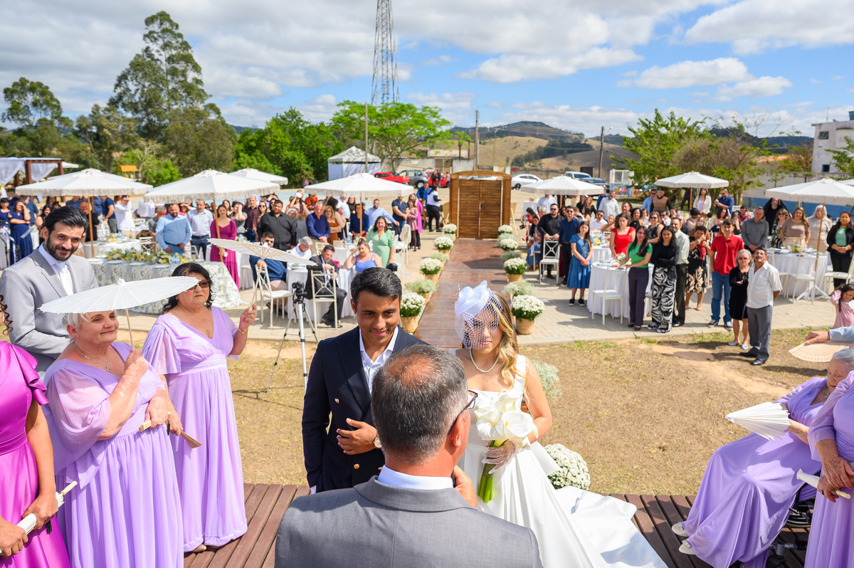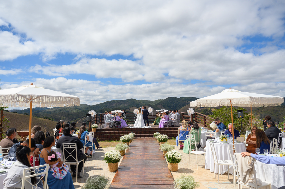 No alto de uma montanha, de onde se podia admirar toda a cidade e o brilho da represa, a beleza do casamento impressionou a todos os presentes. A felicidade contagiante dos noivos irradiava, tornando este dia inesquecível. Foi uma celebração repleta de alegria, luz e a promessa de uma vida inteira juntos.
